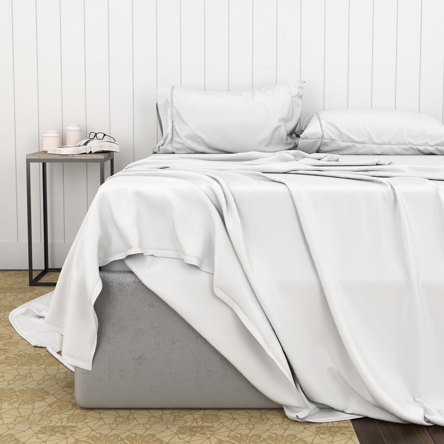 • (1) flat sheet, (1) fitted sheet, (2) pillowcases